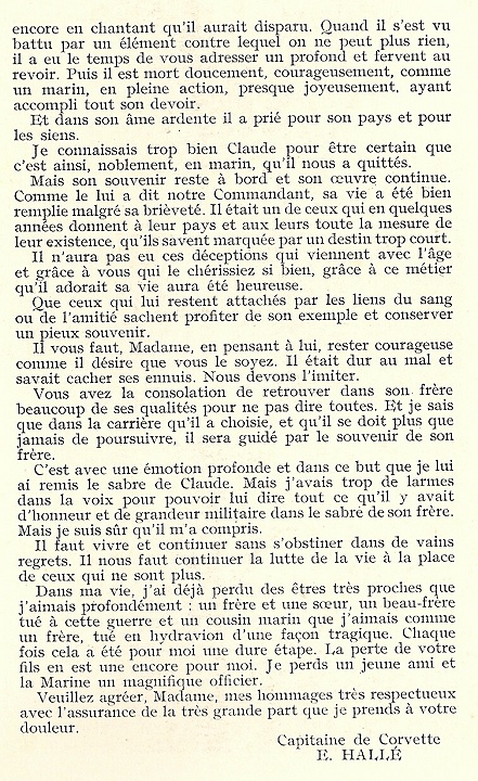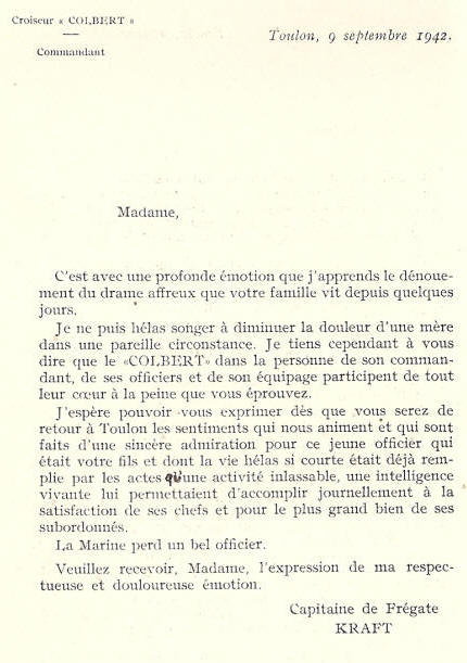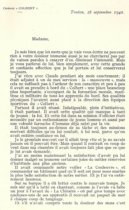 "COLBERT" écrite à sa mère, Lucienne Fannius née Radisse