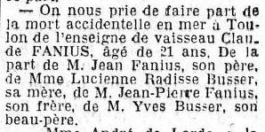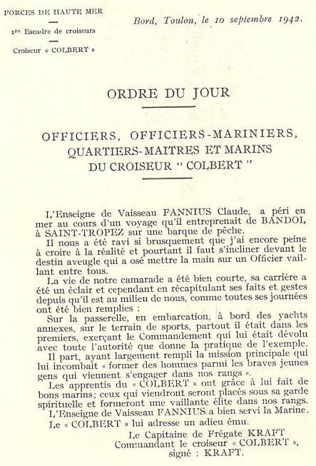 accidentellement, en septembre 1942, en mer entre BANDOL et SAINT