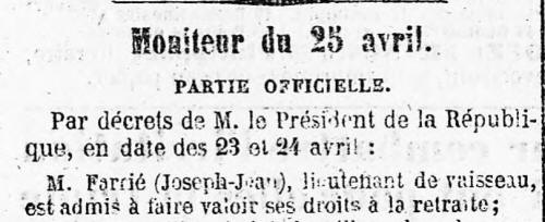 Au 1er janvier 1849, Lieutenant de vaisseau de 1ère classe, port