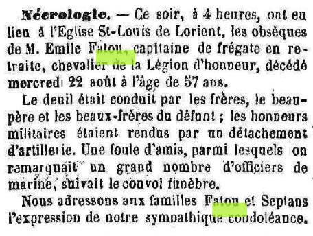(Finistère) - Décédé le 22 août 1883 à LORIENT (Morbihan).