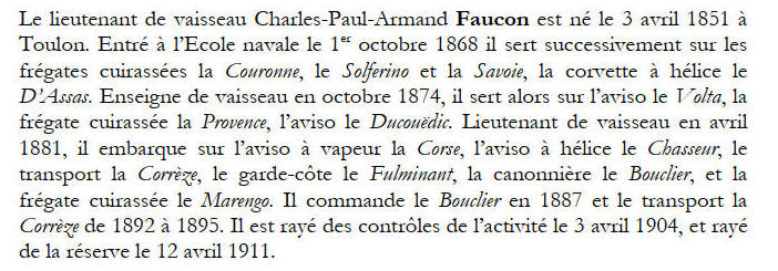 17 décembre 1874, il sert alors sur l’aviso le Volta, la frégate