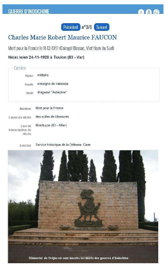 vaisseau Faucon a reçu à titre posthume la citation suivante à