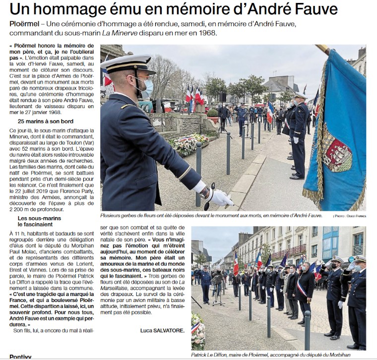PLOËRMEL (Morbihan) - Décédé le 27 janvier 1968 au large de TOULON