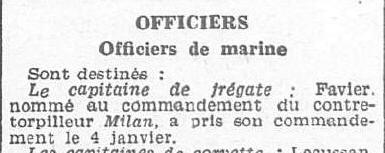 contre-torpilleur "MILAN", Division navale du Levant. jusqu'au 19