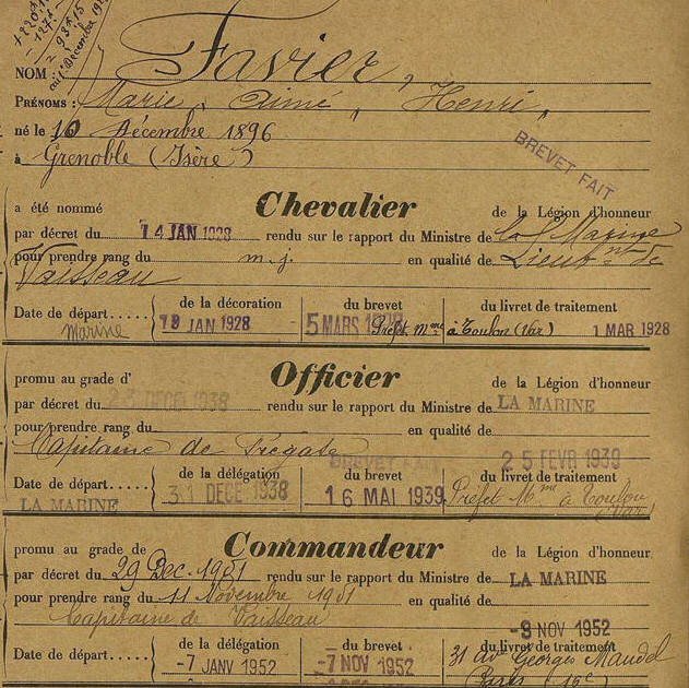 port TOULON. Capitaine de frégate le 5 mars 1936.