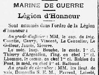 Le 2 février 1903, nommé Chevalier de la Légion d’Honneur