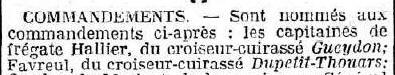 Dupetit-Thouars, commandement qu’il exercera jusqu’en 1917
