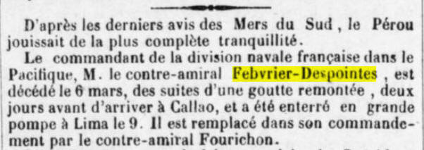 Décédé le 5 mars 1855 au large du Pérou