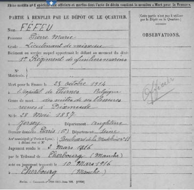 Régiment de Fusiliers Marins, 12ème compagnie, il décède à l'Hôpital