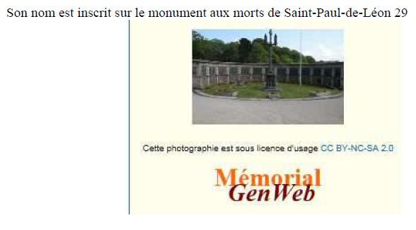 d'Armor) - Décédé le 22 décembre 1914 à STEENSTRAATE (Flandre