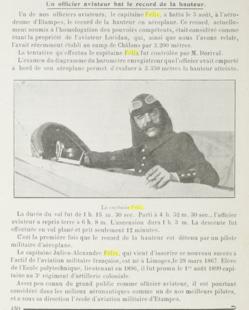 Chevalier de la Légion d'Honneur le 12 juillet 1911, étant Capitaine