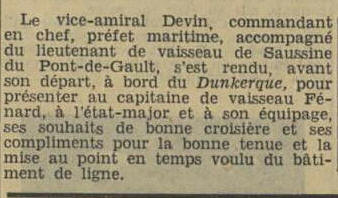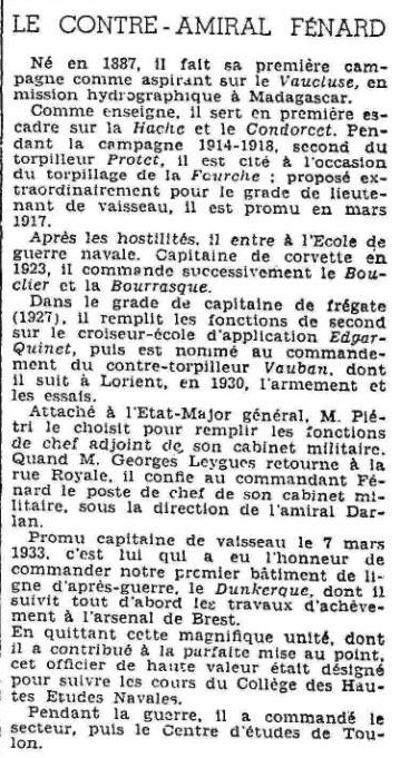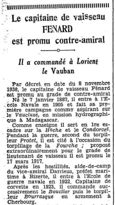 "HACHE", 1ère Escadre (Cdt Jean CARON); puis sur le cuirassé