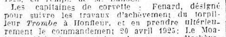 Commandant le torpilleur "BOUCLIER", puis en 1925-1927, suit les