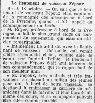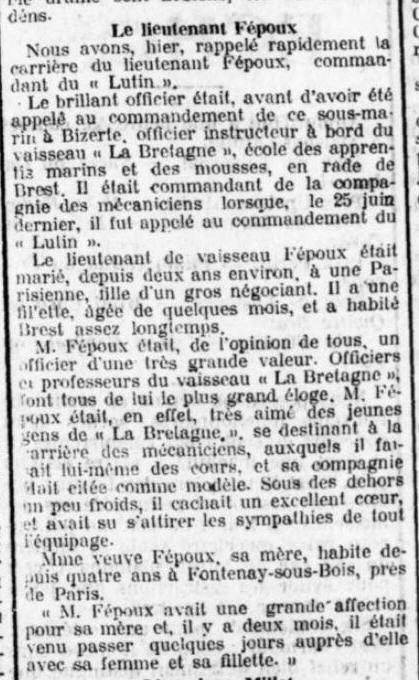 Officier disparaît avec le sous-marin "LUTIN" qu'il commandait .