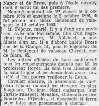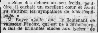 signalé sur le cuirassé "BOUVET", Escadre de Méditerranée (Cdt Louis