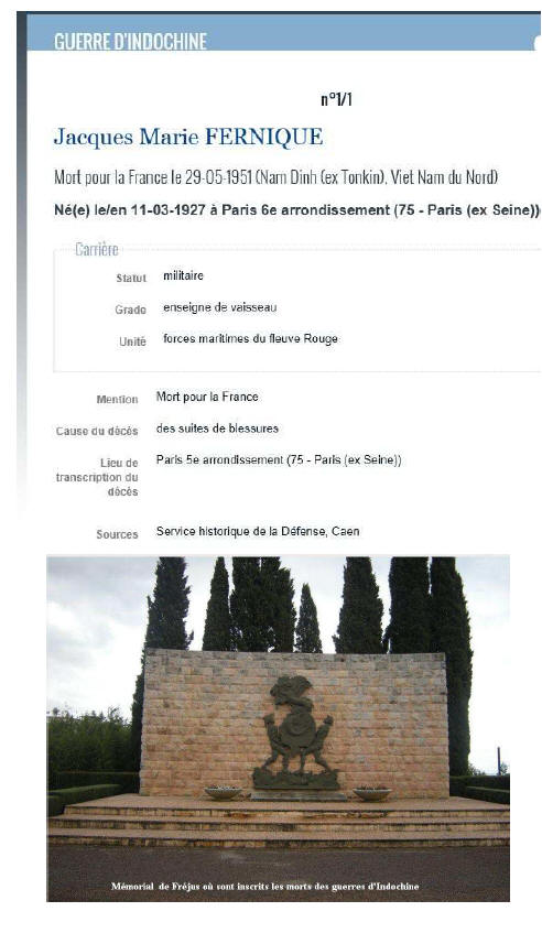 de vaisseau Fernique a reçu à titre posthume la citation suivante à