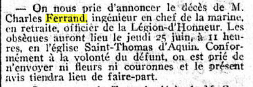 1er octobre 1908 : il est admis à la retraite et nommé ingénieur en