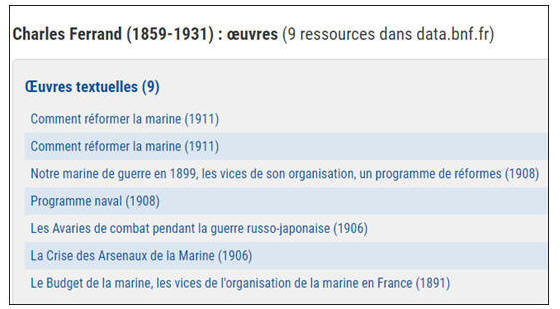 Publie notamment : 1899, Notre marine de guerre. 1906 : La crise des