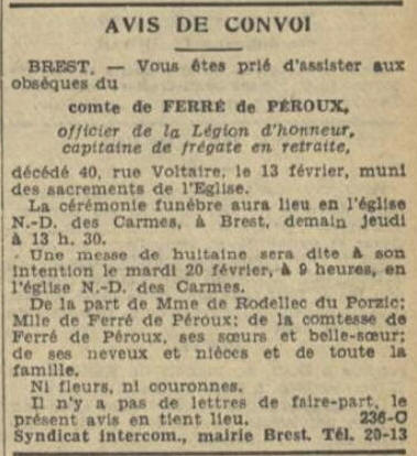 - Décédé le 13 février 1940 à BREST (Finistère)