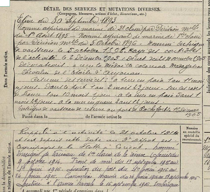 Entre dans la Marine en 1893