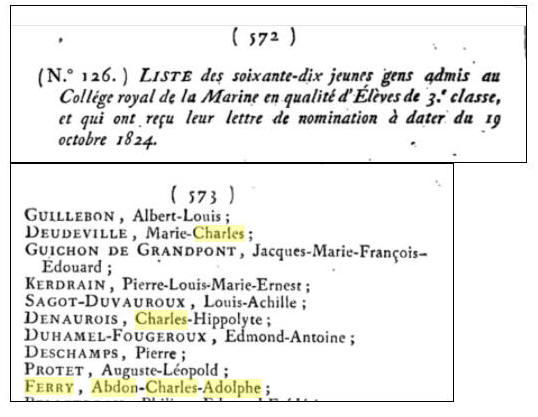 Admis au collège royal de la Marine en octobre 1824