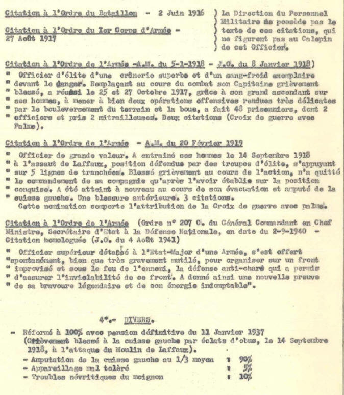 2e citation : Officier de grande valeur. A entraîné ses hommes, le