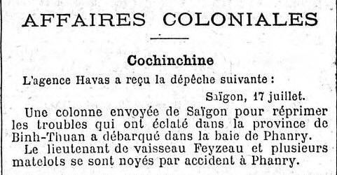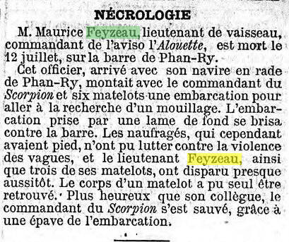 BORDEAUX (Gironde) - Disparu en mer le 18 juillet 1886, baie de PHAN