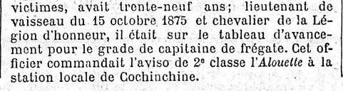 l'aviso "ALOUETTE", Station locale de COCHINCHINE.