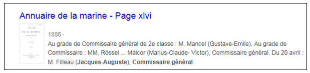 Au 1er janvier 1886, Chef du Service de la Marine du