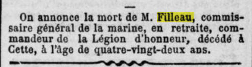 Au 1er janvier 1869, Chef du service de la Marine à NICE auprès du