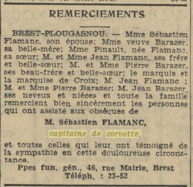 Né le 4 août 1883 à PLOUGASNOU (Finistère) - Décédé le 10 février