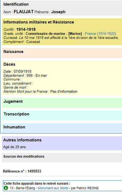 Son nom est inscrit sur le monument aux morts de Berre-l’Etang