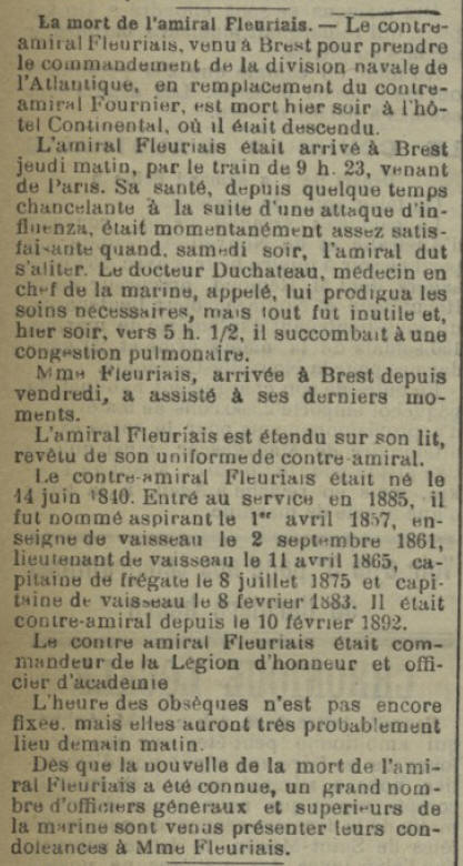 de la Division navale de l'Atlantique mais décède avant sa prise de