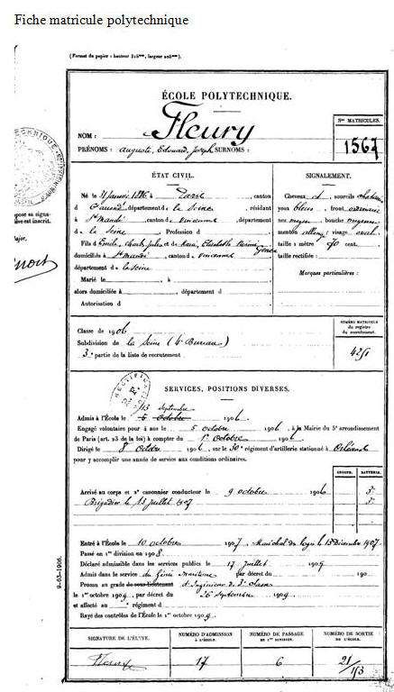 Élève de l'École polytechnique le 1er octobre 1906, opte pour le