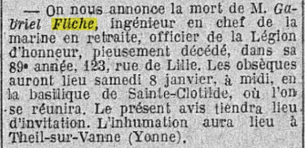 PARIS (Seine) - Décédé 5 janvier 1927 à PARIS (Seine)