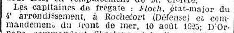 Capitaine de frégate le 25 septembre 1920; port TOULON.