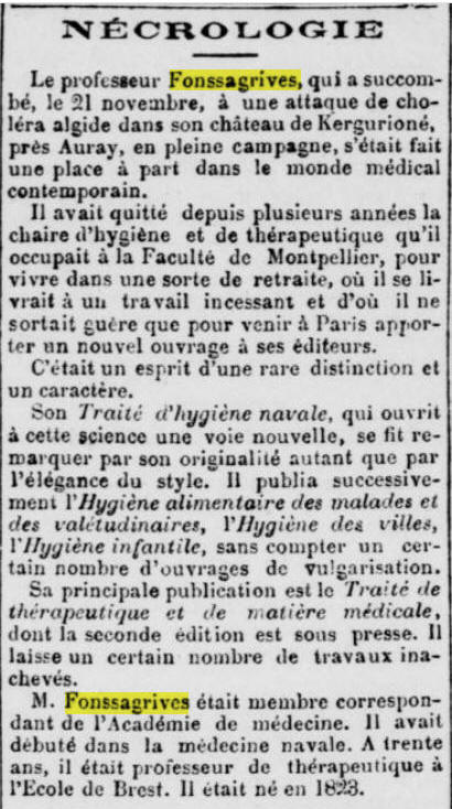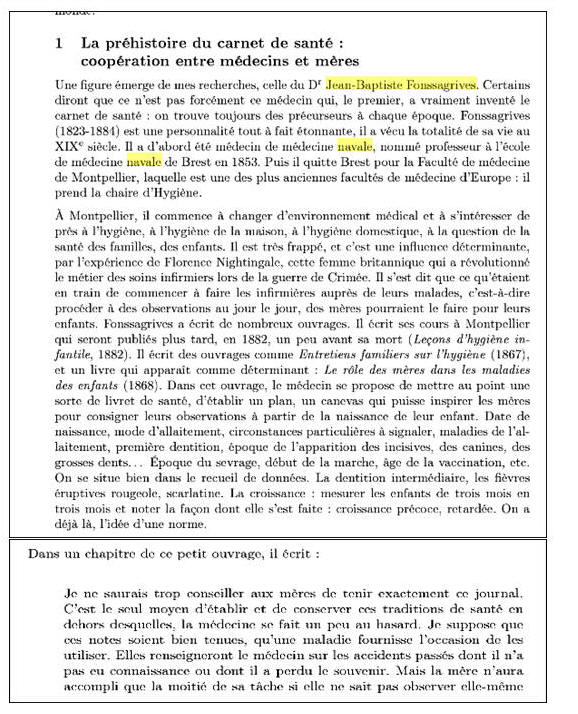 des marins français, E.Taillemite. Bio Fonssagrives, Devoirs de