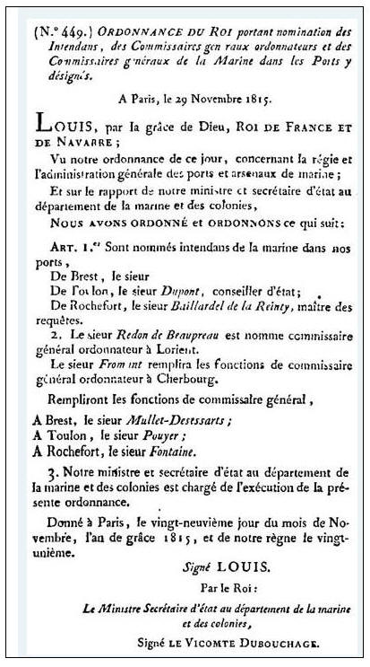 Commissaire général au port de Rochefort le 29 novembre 1815
