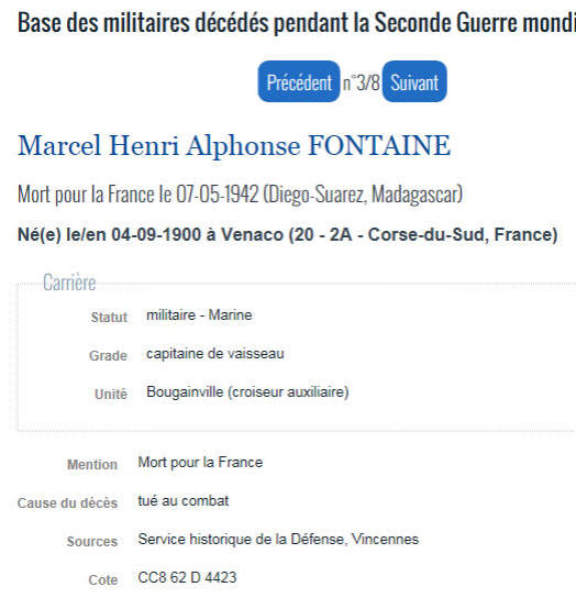 à VENACO (Haute-Corse) - Tué le 6 mai 1942 à DIEGO-SUAREZ;