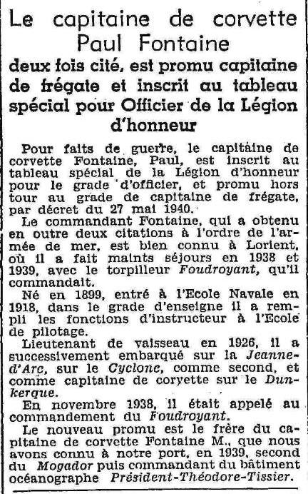 port CHERBOURG; inscrit au tableau de concours de la Légion