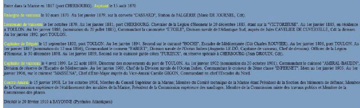 Entre dans la Marine en 1867 (port CHERBOURG)