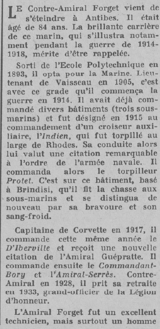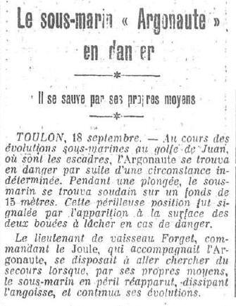 Commandant le sous-marin "JOULE", Station des sous-marins de TOULON.