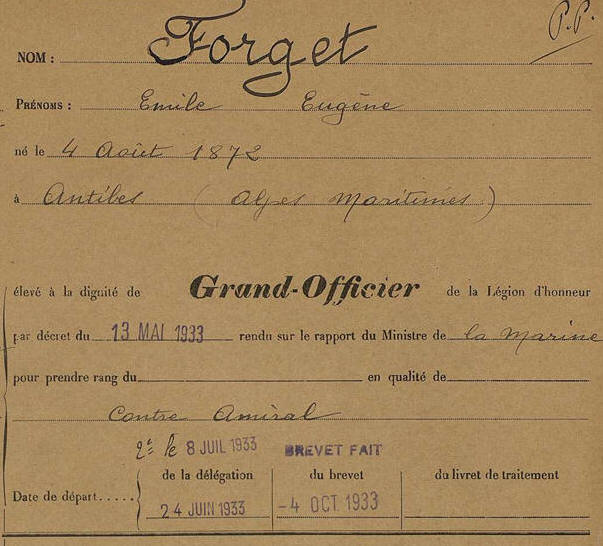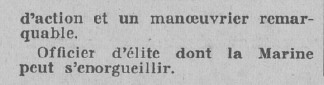 le 1er juillet 1917, Commandant le torpilleur "D'IBERVILLE". Idem en