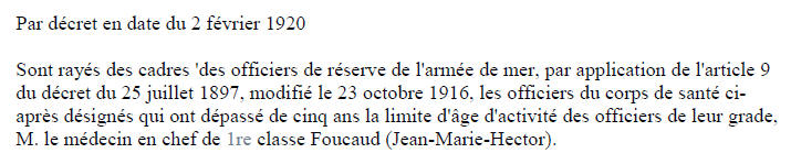Médecin en chef de réserve, Chef de l'Hôpital maritime de ROCHEFORT