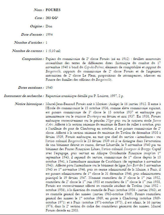 Bougainville où il se distingue dans l’évacuation du navire détruit