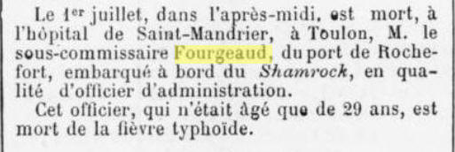 Né le 1er avril 1856 - Décède le 2 juillet 1885 à SAINT MANDRIER