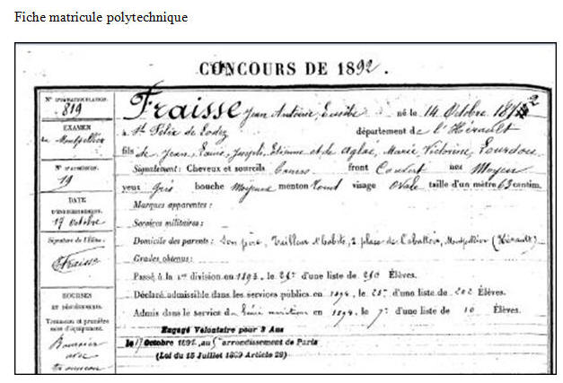 Sous-ingénieur de 3ème classe le 13 novembre 1896.