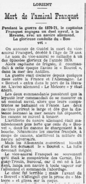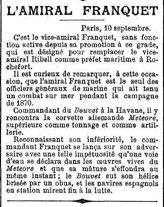 face à LA HAVANE, il aborde la canonnière prussienne "MÉTÉOR", lui
