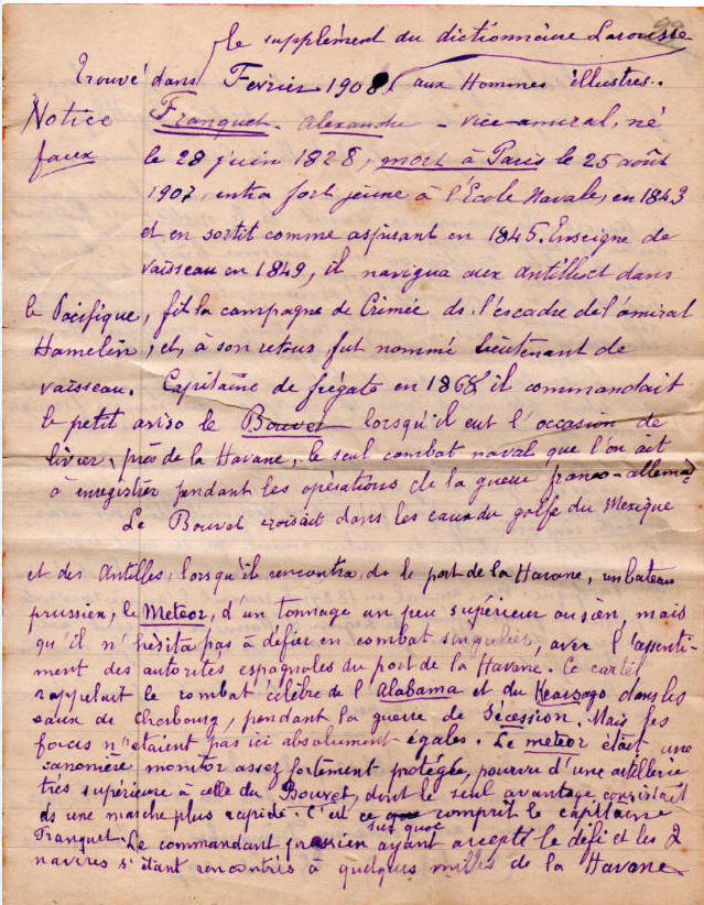 le 29 novembre 1856, étant sur l' "ARCOLE" en Méditerranée.