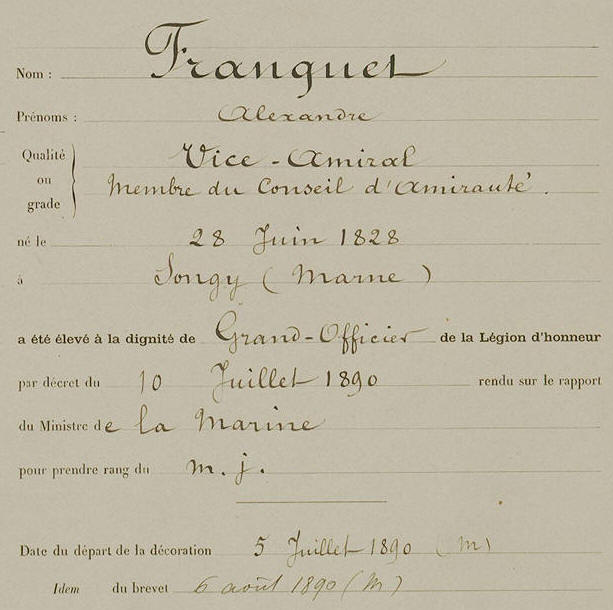 d'Honneur le 10 août 1861, il commande ensuite d'autres vaisseaux